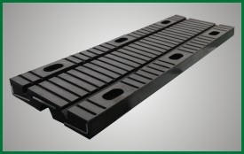 橡膠伸縮裝置利用橡膠材料剪切模量低的原理設(shè)計(jì)制作而成的,在剪切型橡膠伸縮體設(shè)有上下凹槽,橡膠體內(nèi)埋設(shè)承重鋼板和錨固鋼板,并預(yù)留螺栓孔,通過螺栓與梁端連成整體跨越梁端間隙。依靠上下凹槽之間的橡膠體剪切變形來滿足梁體結(jié)構(gòu)的相對位移。具有伸縮量大、行車平穩(wěn)等優(yōu)點(diǎn)。該產(chǎn)品可用于公路橋梁結(jié)構(gòu)中。