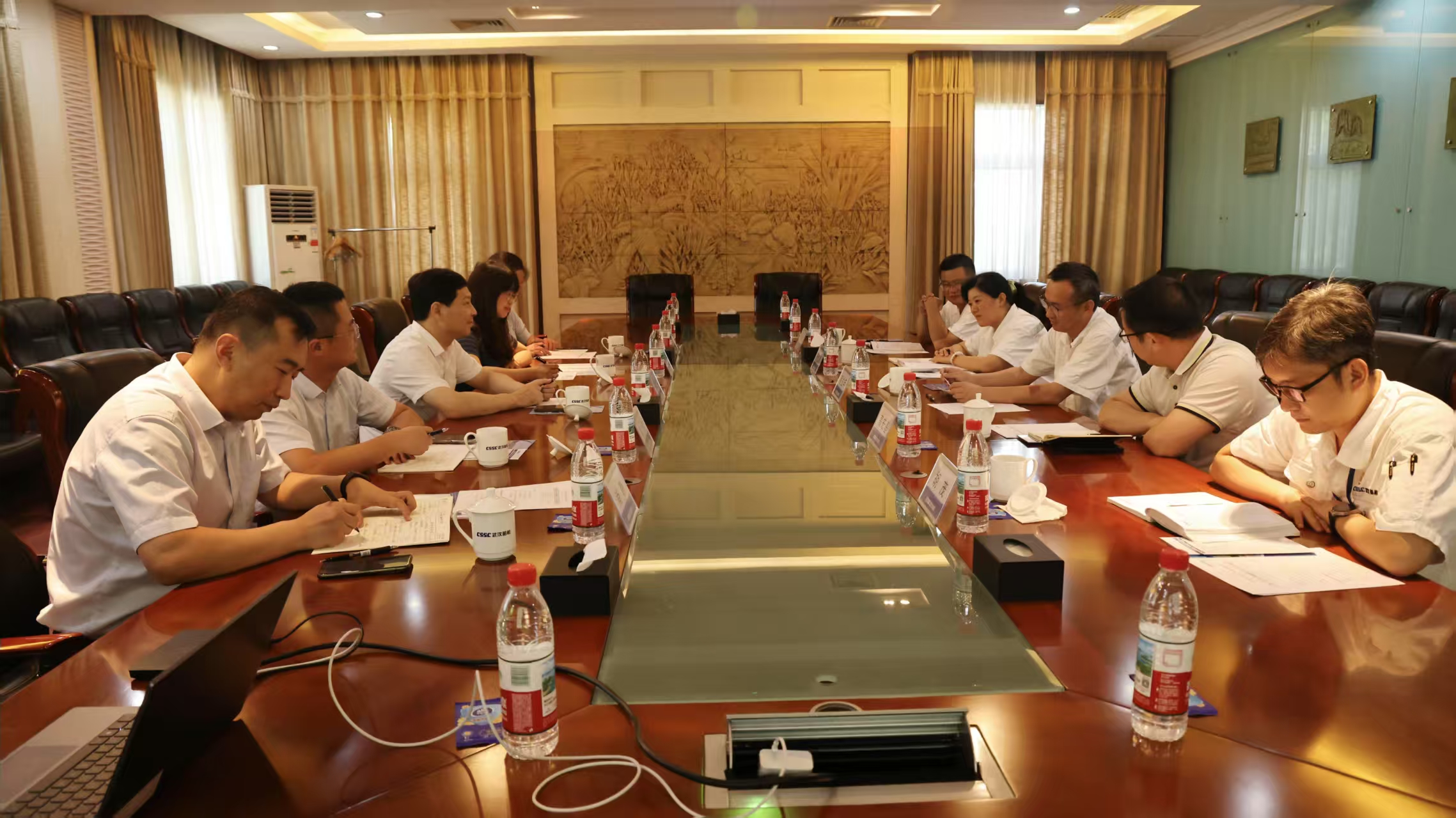 7月23日,江蘇科技大學(xué)黨委常委、副校長胡愛祥一行到中船集團(tuán)武漢船機(jī)交流。公司黨委副書記、總經(jīng)理程立兵接待,綜合管理部、人力資源部、科創(chuàng)與信息化研究中心、技術(shù)中心等部門負(fù)責(zé)人參加座談交流。